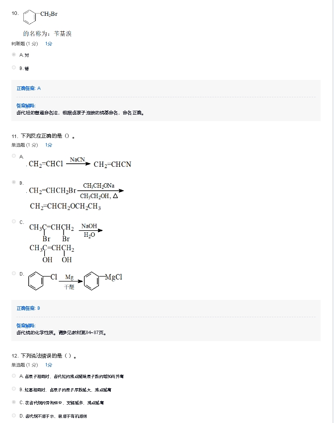 12. 卤代烷与硝酸银的反应。答案为正确。