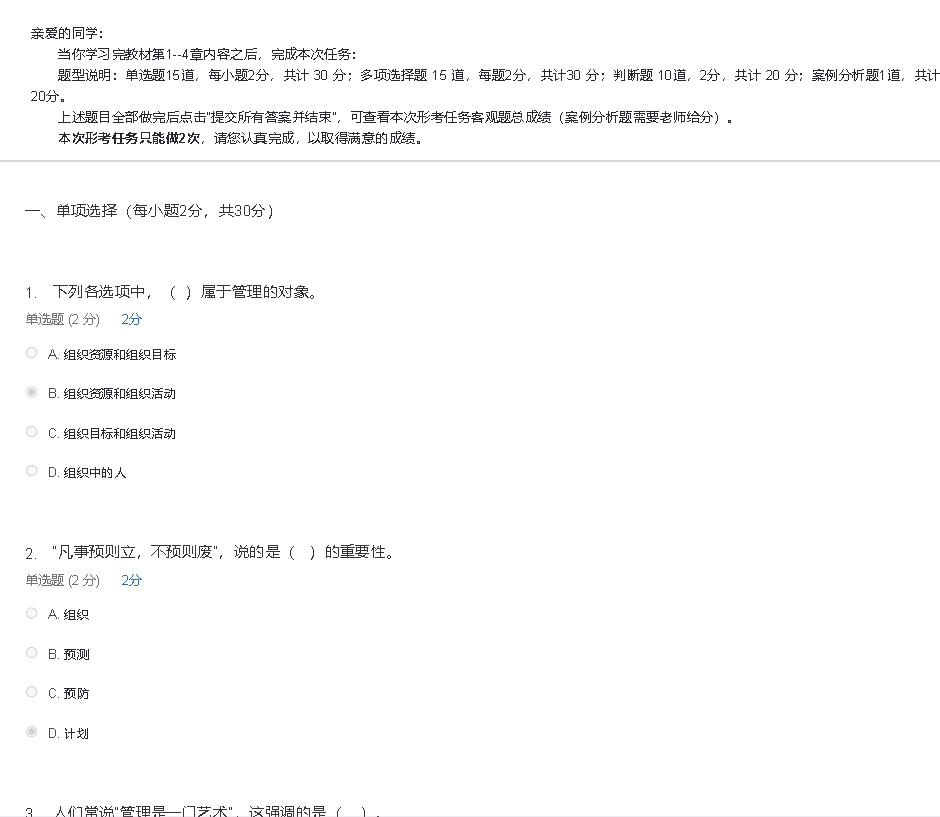 (1)管理是管理者为有效地达到组织目标,对组织资源和组织活动有意识、有组织、不断地进行的协调活动。